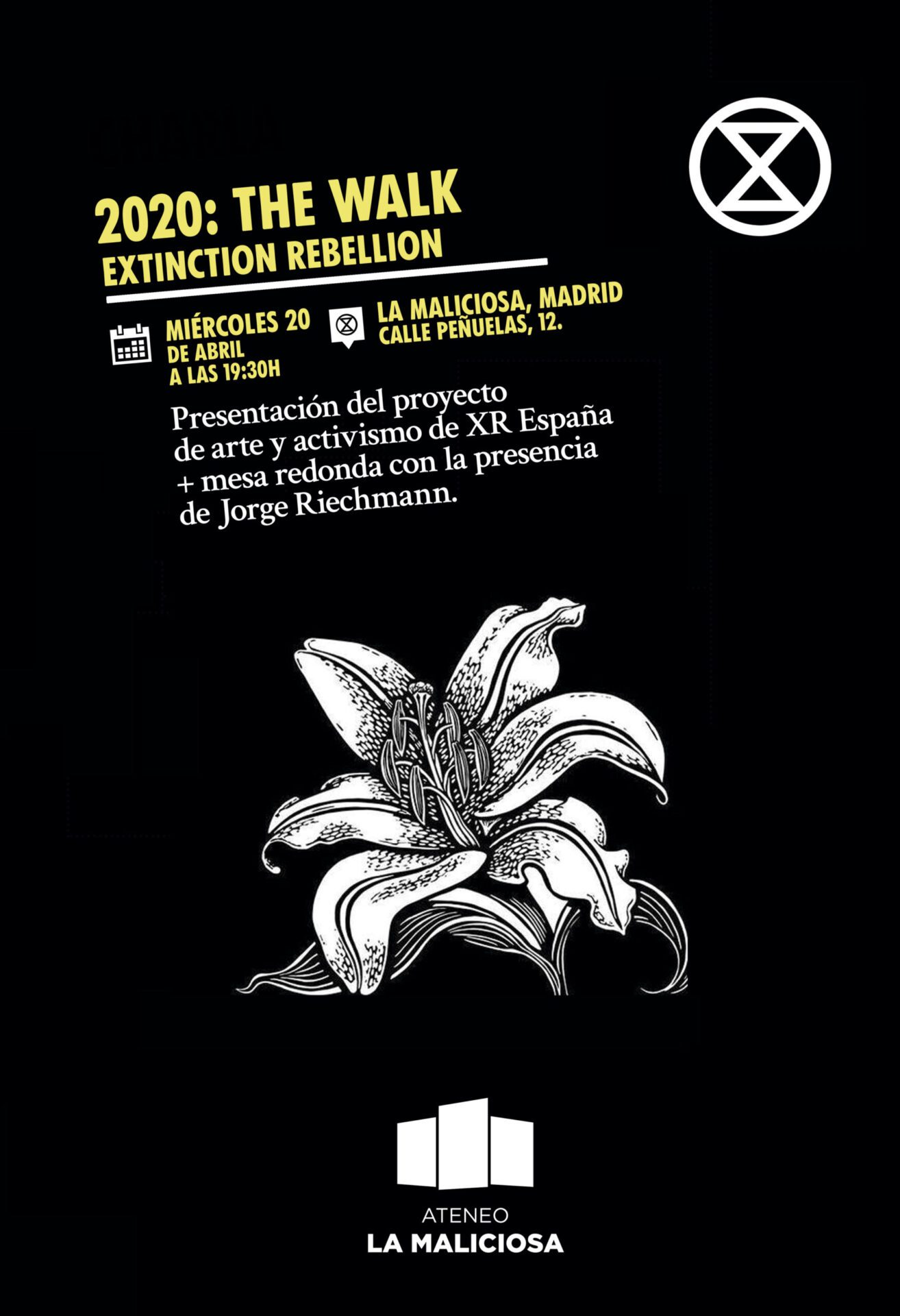 Presentación de 2020: The Walk, proyecto de arte y activismo de Marta Moreno Muñoz con Extinction Rebellion; y mesa redonda con la participación de: Jorge Riechmann, Caliza, Oscar Martín y Miguel Díaz.