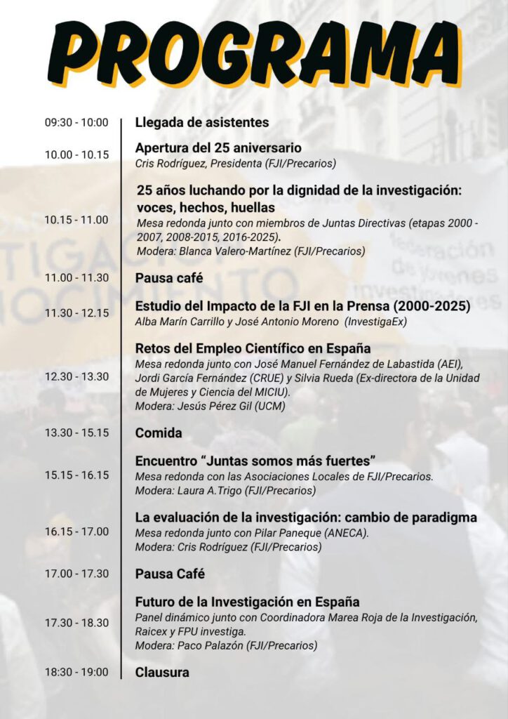 Ven a celebrar con nosotras un cuarto de siglo luchando por la dignidad de la investigación.