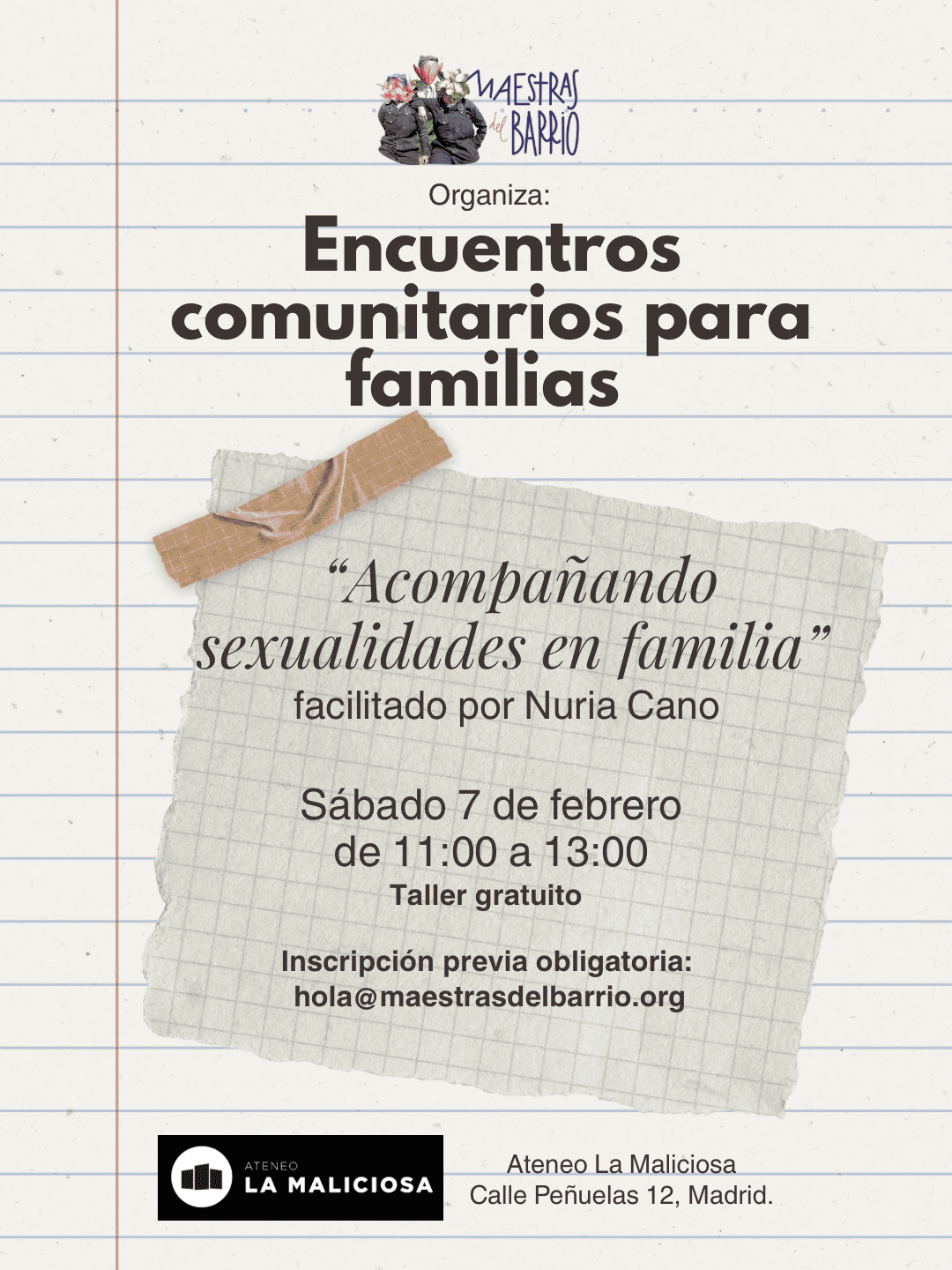 📝 Inscripción obligatoria en hola@maestrasdelbarrio.org